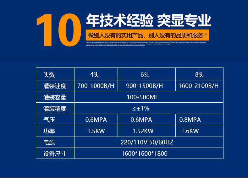 全自動辣椒醬六頭灌裝機作為公司新研發(fā)的灌裝設(shè)備在市場上起到了關(guān)鍵性的作用,是集光,機,電,氣于一體,采用活塞式定量原理,灌裝精度高,操作簡單,維護方便,設(shè)備主要材質(zhì):采用SUS304不銹鋼制造,符合衛(wèi)生要求.灌裝過程采用亞克力透明板與外界隔離,保證灌裝的衛(wèi)生要求。灌裝采用壓力式灌裝,無需配裝高位罐,簡化了安裝工序,提高了灌裝效率??蓮V泛應(yīng)用于食品、醬料行業(yè)產(chǎn)品的自動化包裝生產(chǎn)。