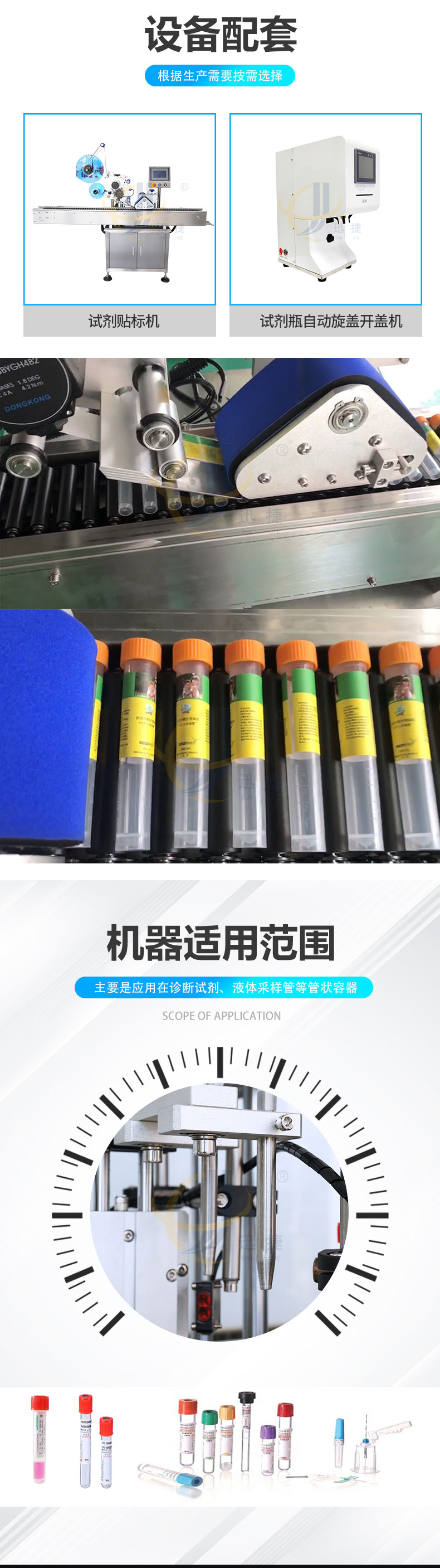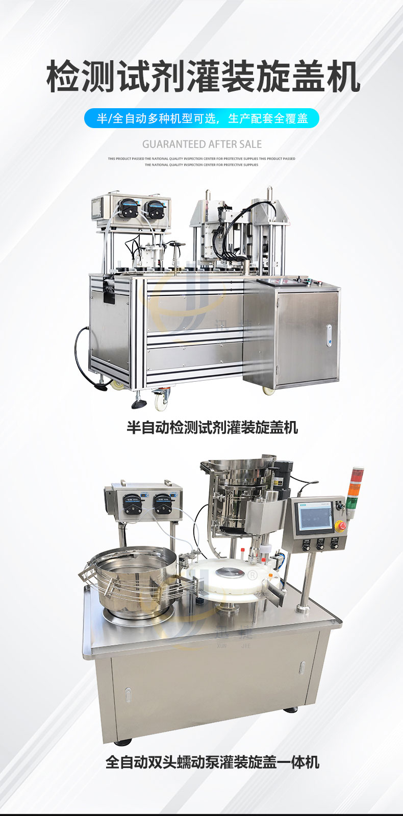 診斷試劑灌裝旋蓋機(jī)適用于診斷試劑、液體采樣管等管狀容器。本機(jī)可選配防塵罩搭配層流罩(FFU)結(jié)構(gòu),可達(dá)到局部百級(jí)環(huán)境下完成灌裝及封蓋。